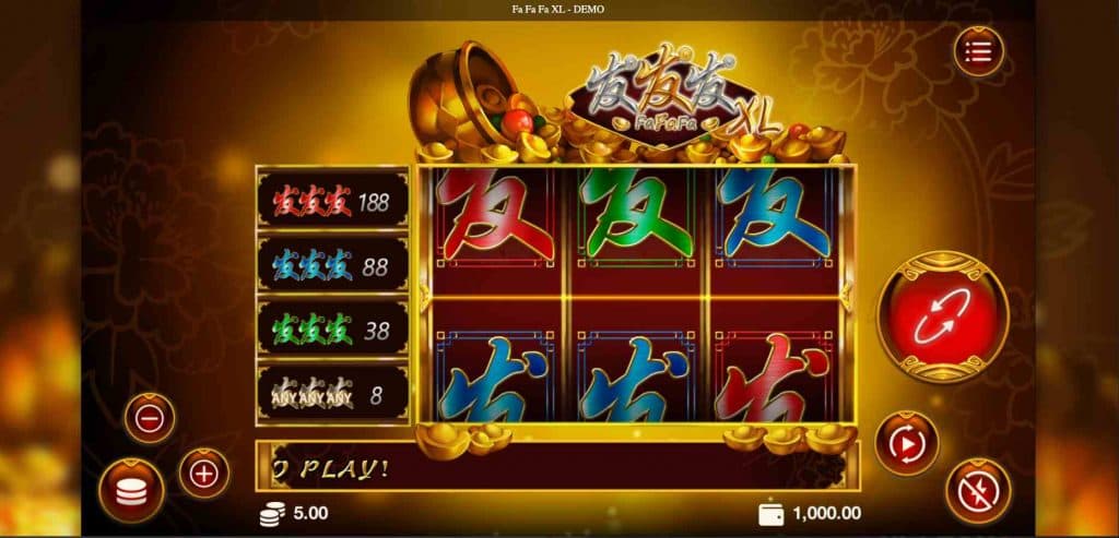 Fa-Fa-Fabulously XL! This is one of the luckiest XL Cafe Casino Slots you can play. The original FaFaFa had prize totals from 5-100, but the XL version has turned the luck up big time. You can now win 8 to 188 times your wager.