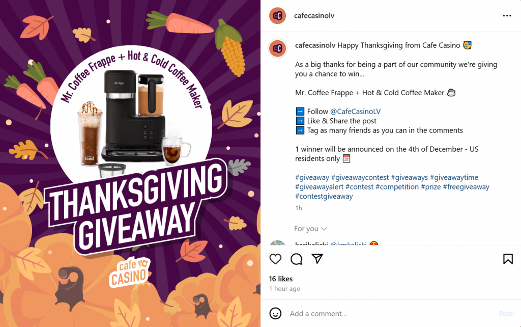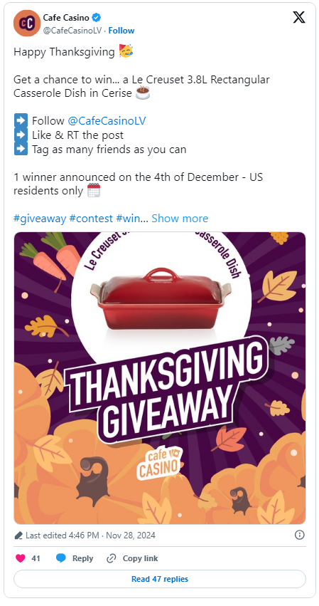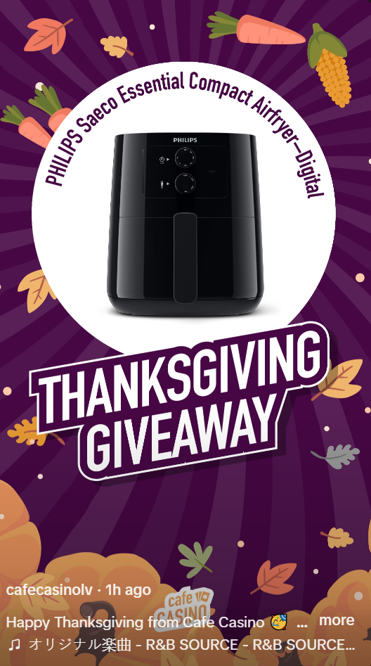 Want to experience some of that Cafe Casino thrill? Here’s all the details on how you can get involved on our different platforms with our upcoming Thanksgiving giveaway.